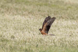 Junge Steppenweihen haben typischerweise ein warmes rostrotes Gefieder, oft mit einem Hauch von Gelbbraun auf der Unterseite. Dies steht im Kontrast zu den eher gräulichen oder silbernen Tönen, die z.B. bei erwachsenen Männchen zu sehen sind. Der Vogel, den ich beobachtete, hatte einen satten, rötlichen Farbton auf Brust und Bauch, was typisch für Jungvögel ist. Der Kopf zeigte eine auffällige cremefarbene, fast rotbraune Krone, die ja oft als „Boa“ bezeichnet wird, ein wichtiges Merkmal, auf das man bei Steppenweihen achten sollte, insbesondere bei jungen Exemplaren.