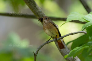 Der Gartenrotschwanz ist ein typischer Vertreter der Fliegenschnäpperverwandten (Muscicapidae) und gehört zu den Zugvögeln, die Mitteleuropa im Frühjahr zur Brut aufsuchen. Die Weibchen sind unauffälliger gefärbt als die Männchen – olivbraun, mit einem rostroten Schwanz. Gerade während der Nestlingsphase übernehmen sie den Großteil der Versorgung. In dieser Zeit ist ihr Verhalten klar fokussiert: Nahrung suchen, bringen, füttern – und das in hoher Frequenz.