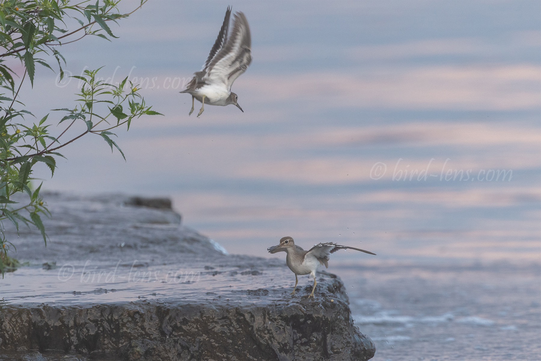 Two Common Sandpipers (Actitis hypoleucos) are arguing on a concrete quay in a dilapidated port complex. Why they’re arguing isn’t clear, but it’s likely they have at least one thing in common: they’re migratory birds, both stopping here for a stopover.
