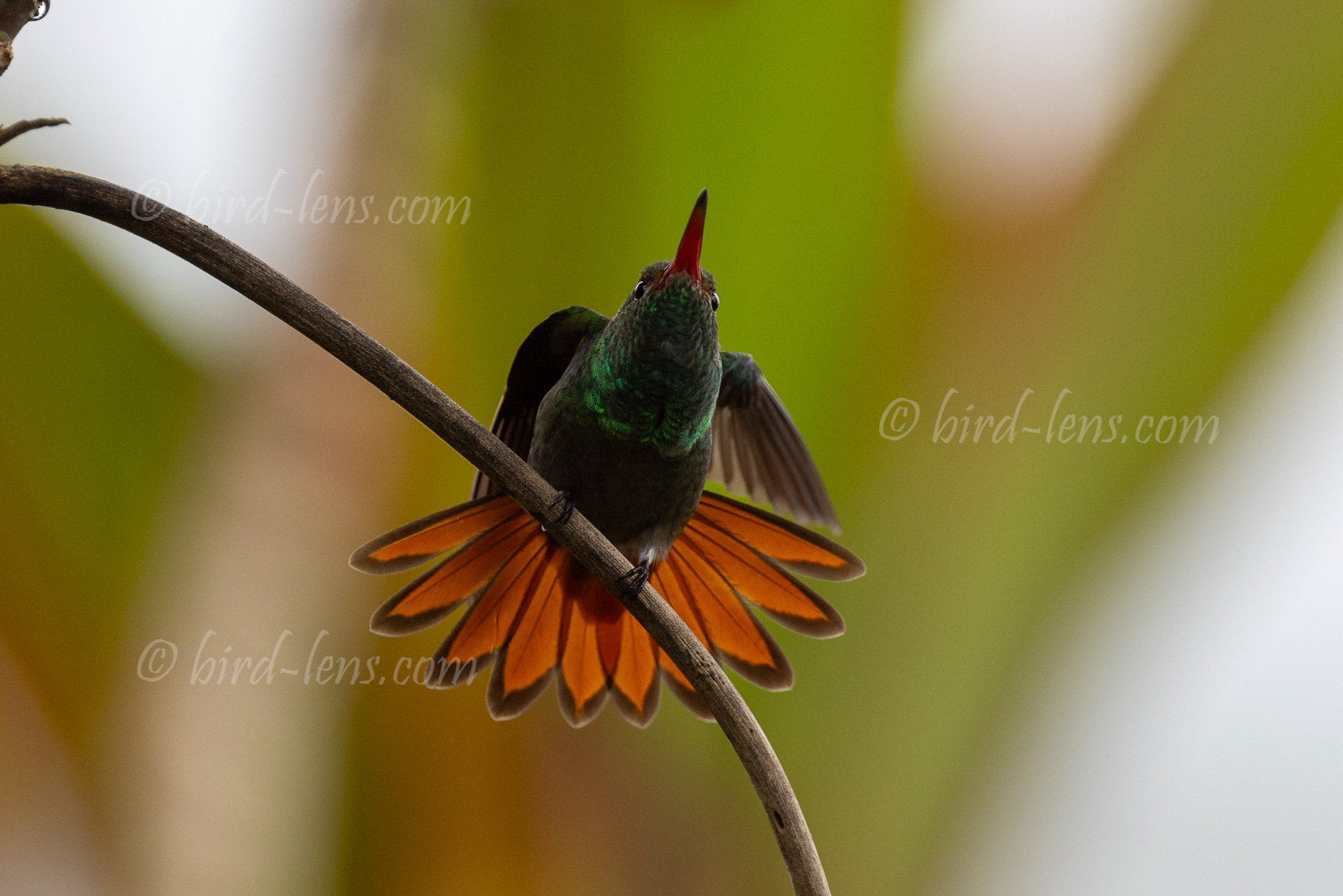 Eine der häufigsten Arten in Cabañas Colibrí Tayutic ist die Braunschwanzamazilie (Amazilia tzacatl), einer der anpassungsfähigsten und kühnsten Kolibris in Mittelamerika. Mit seinem schimmernden grünen Körper und dem rötlichen Schwanz ist diese Art ein häufiger Besucher von Futterstellen im Garten und blühenden Pflanzen. Die Braunschwanzamazilie ist für ihr territoriales Verhalten bekannt und verjagt andere Kolibris oft von ihren bevorzugten Nektarquellen.