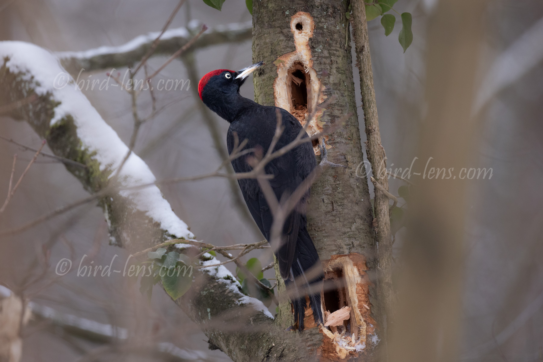 Harte Schläge hallen durch den Wald. Zuerst eher verhalten, leise, dann im harten Takt. Neugierig nähere ich mich der Geräuschquelle. Dann sehe ich ihn: groß, rabenschwarz, mit rotem Scheitel, der zwischen den schneebedeckten und vereisten Ästen aufleuchtet. Ein Schwarzspecht (Dryocopus martius) hängt an einem erstaunlich dünnen, abgestorbenen Baumstamm und arbeitet sich mit beeindruckender Zielgenauigkeit und Ausdauer ins Holz. Die Späne fliegen. Immer wieder hält er kurz inne, lauscht, setzt neu an. Dann fährt der Schnabel wieder wie ein Meißel ins mürbe Holz. Plötzlich zieht er etwas Weißliches aus der entstandenen Höhle, wirft den Kopf zurück und verschlingt die Beute. Kaum geschluckt, hackt er weiter. Für Vogelliebhaber ist das ein faszinierender Moment: rohe Kraft, Präzision und ein klarer Zweck.