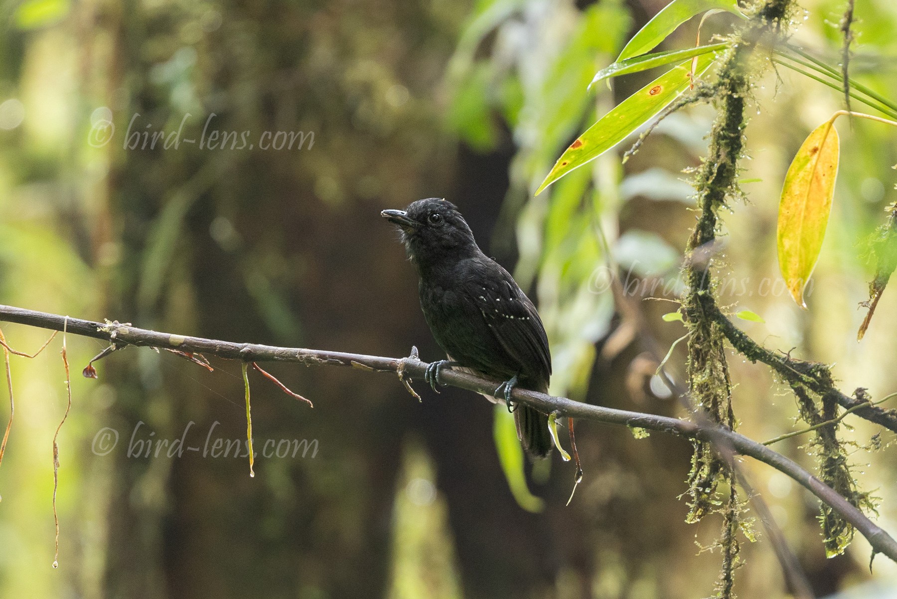 I am not expecting it. The morning along the edge of Tatamá National Natural Park in Risaralda is already generous with tanagers and mixed flocks moving through the mid-elevation forest. Then a dark shape shifts quietly inside a dense tangle of bamboo. At first it is just movement and shadow. When the bird turns, the faint white speckling on the black wing coverts catches the light. One of the small Antshrikes, I supposed first. But then the bird reveals a the rare male Bicolored Antvireo (Dysithamnus occidentalis). Here, near the forest edge, it feels like a small privilege.