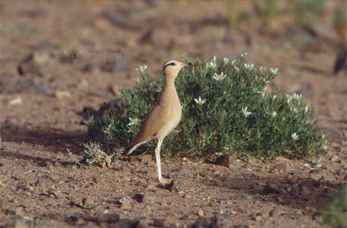 “Cursorius cursor; Adult with prey in beak in desert; Tagdilt Desert, Prov. Draa/Morocco”